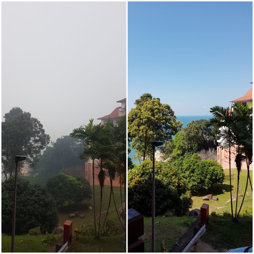 Das passiert jedes Jahr. Das heißt jedes Jahr sitzen alle Länder im Rauch, natürlich auch Indonesien selbst. Und da brennt leider nicht nur Grün (was schlimm genug ist!), sondern auch viele illegal entsorgte Müllberge, größtenteils importierter Müll aus England und Deutschland. Ganz legal und von Deutschland offiziell als “recycled” bewertet, aber Malaysia hat gar nicht die Technologie, um diesen Müll zu recyclen, daher kassieren sie nur das Geld und verbrennen alles einfach ungefiltert in abgelegenen Gegenden. Anderes Thema.